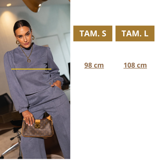 O conjunto camisola e calça azul, marca Miss You, junta conforto e elegância numa só peça. Composto por camisola de manga comprida e calça de corte largo, oferece um visual moderno, sofisticado e perfeito para o dia a dia ou para ocasiões que pedem estilo sem esforço.