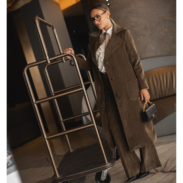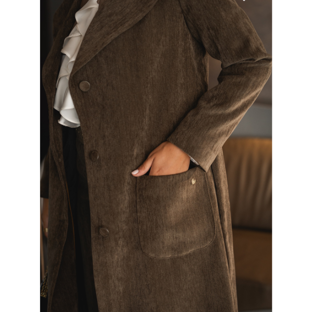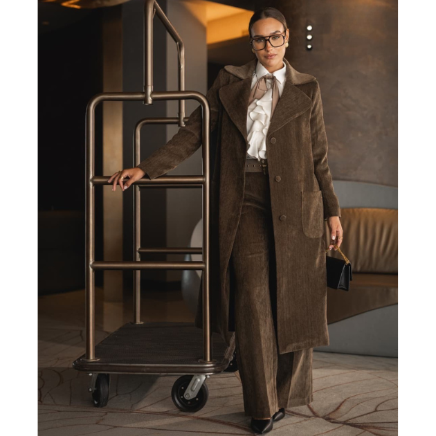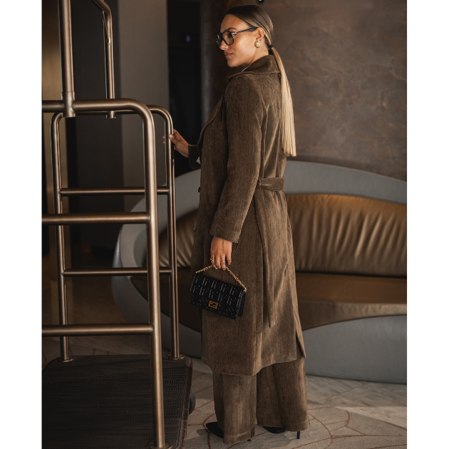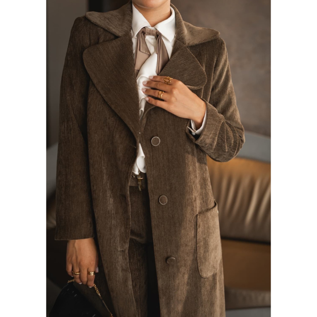Descobre o casaco comprido que combina classe, conforto e versatilidade. Produzido em tecido de veludo suave, com textura elegante e acabamento premium, este casaco é a escolha perfeita para quem procura um look sofisticado em qualquer ocasião – trabalho, jantar, viagem ou eventos especiais. O corte estruturado alonga a silhueta e proporciona um caimento impecável.