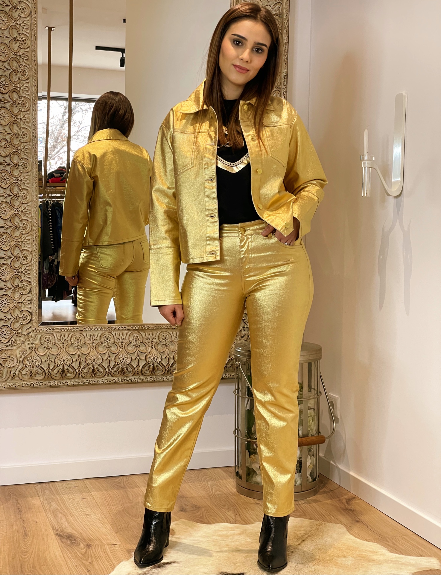 - Detalhes: Casaca dourada metalizada. Botões dourados.
