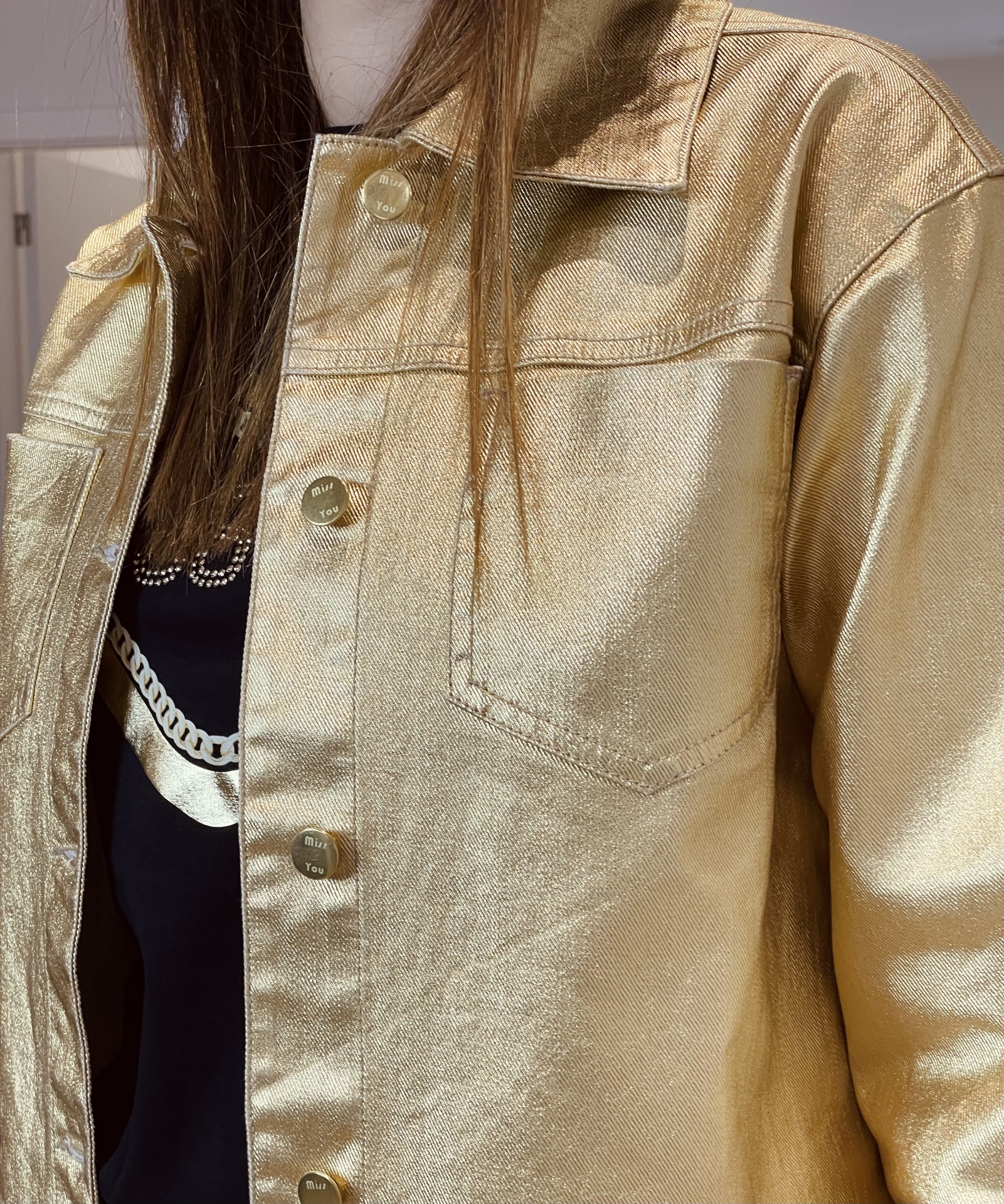 Casaco feminino dourado curto Miss You