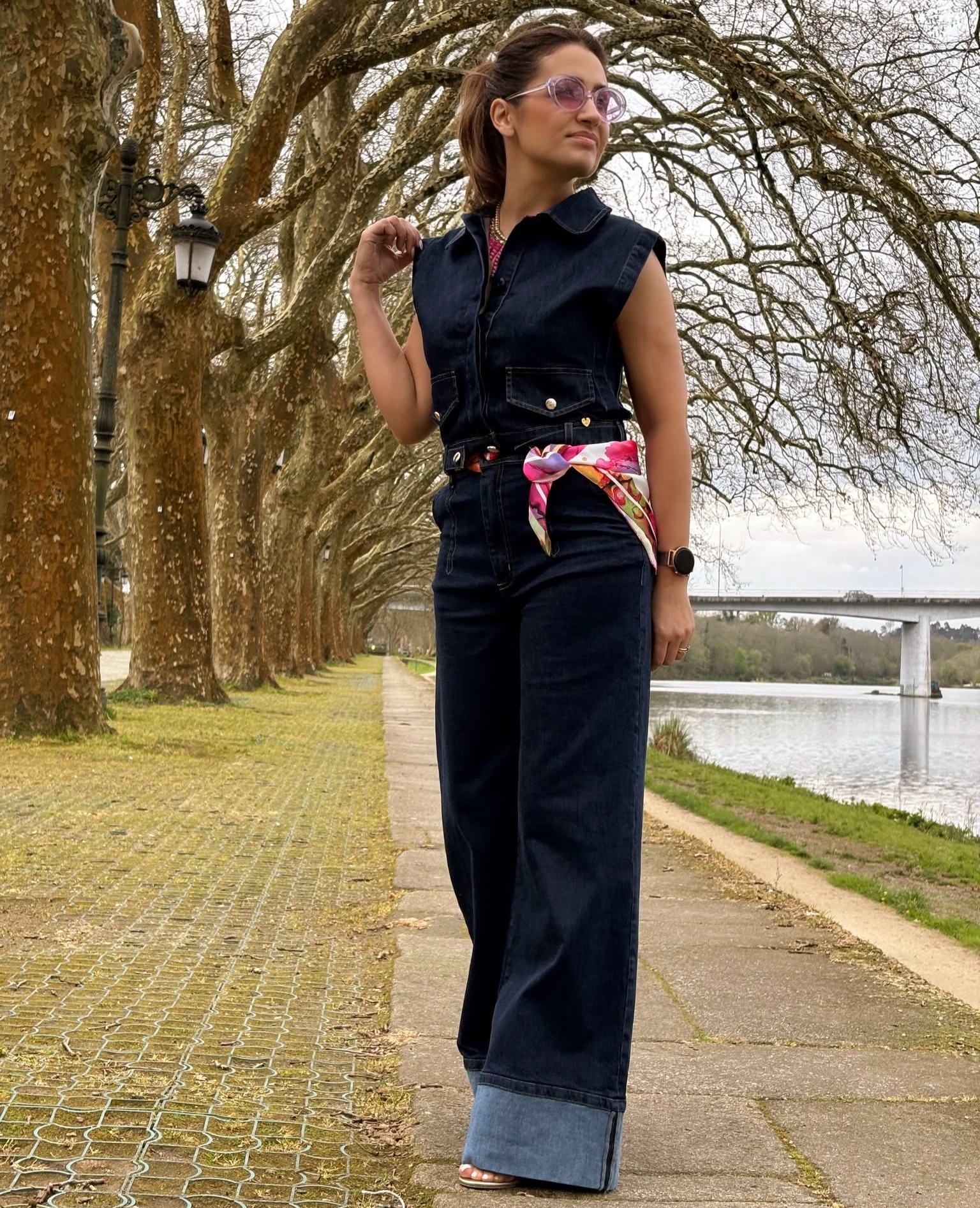 Sendo um conjunto de calça e colete jeans, ele se torna ainda mais versátil. Aqui estão algumas sugestões de looks para diferentes estilos: