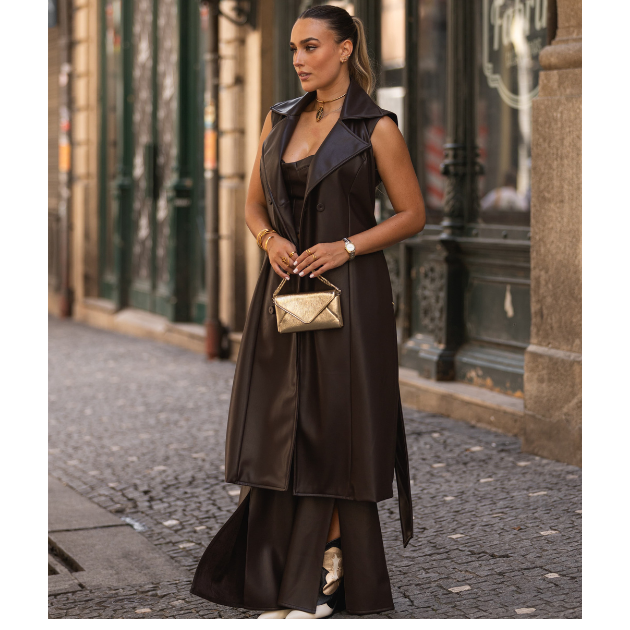 O Colete Pele Sintética é a peça perfeita para elevar qualquer produção com um toque sofisticado e contemporâneo. Com corte elegante, acabamento premium e caimento fluído, este colete/vestido é ideal para mulheres que procuram estilo, conforto e personalidade num só look.