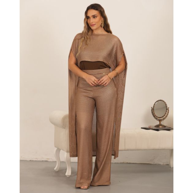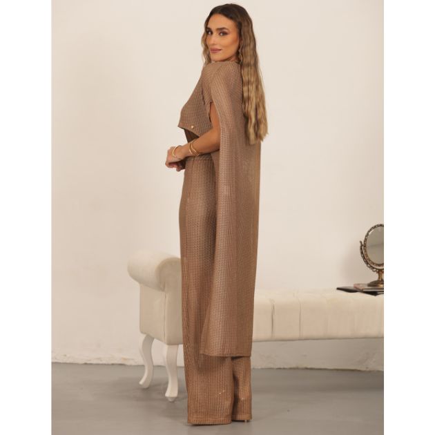 Conjunto feminino elegante calça larga e túnica dourado Miss You
