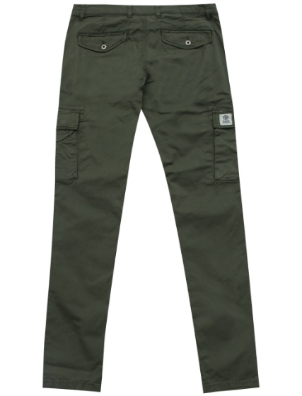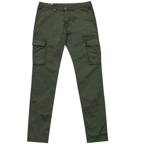 Calças cargo verdes com bolsos laterais e fecho abotoado
