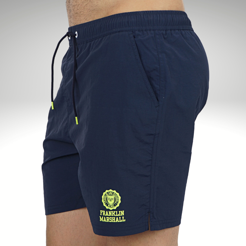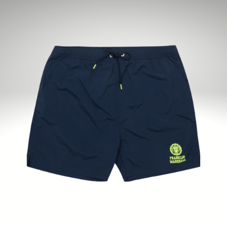 • Detalhes: Calção de banho azul marinho. Logotipo impresso na coxa esquerda. Forro de malha com bordas elásticas.