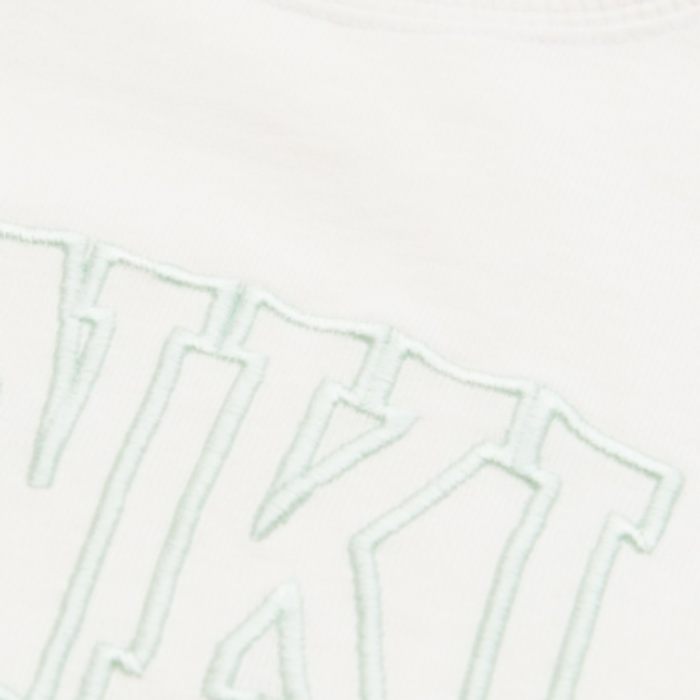 - Detalhes: Camisola branca com nome da marca em verde água. Gola, punhos e zona inferior com nervuras.