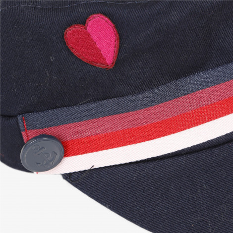• Detalhes: Boné com fita listrada multicolorida. Botão decorativo ao lado. Sarja lisa azul marinho. Circunferência da cabeça interna acolchoada.