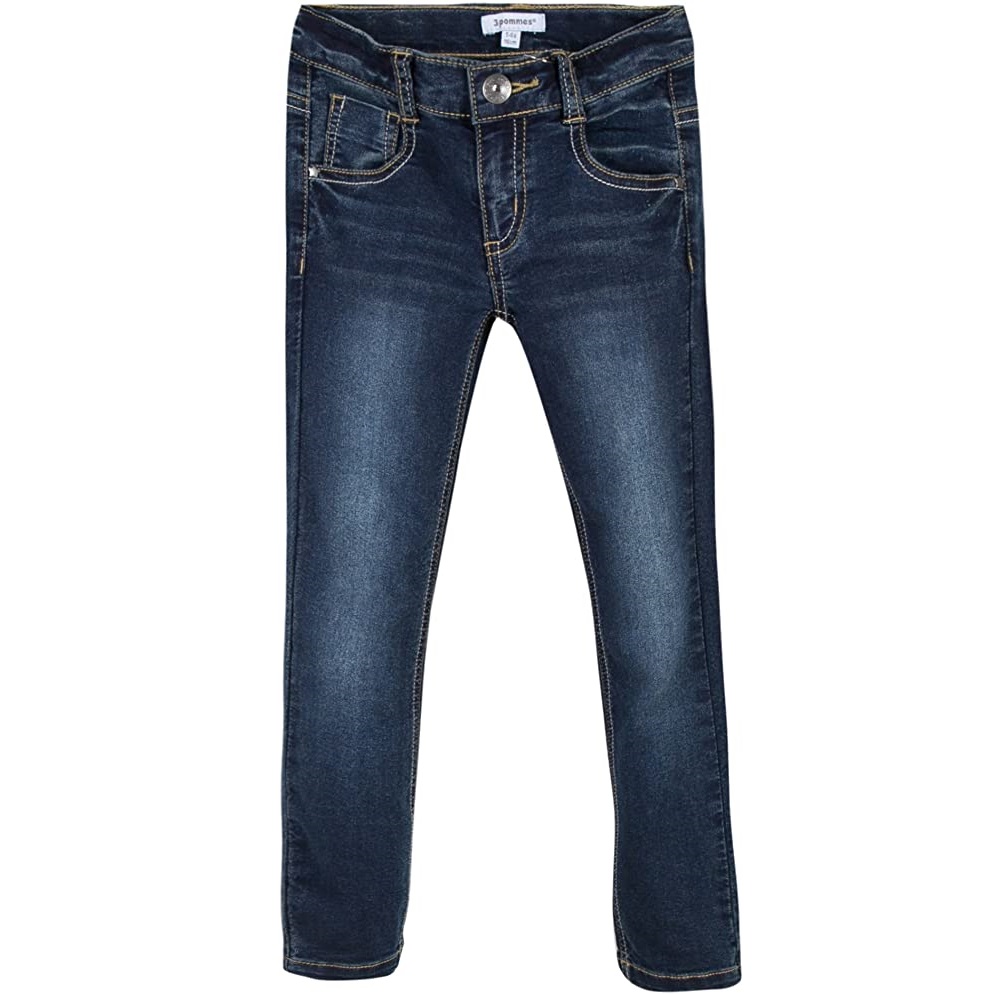 Calças de ganga azuis escuras para criança com bolsos frontais e botão metálico