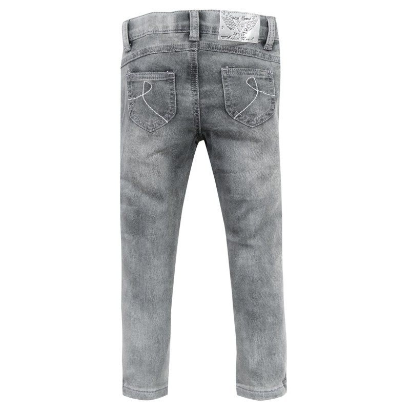 Calças de ganga cinzentas para criança com efeito lavado e aberturas nas laterais.