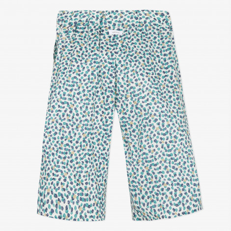 Detalhes: Calça de tecido leve e fluído. Corte reto e largo. Cintura elástica. Tecido de viscose pura com estampado em bolinhas de tons verdes. Lavar à máquina a 30 ° C. Assinatura Catimini.