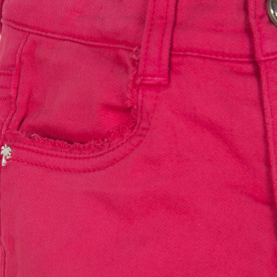 Calças de criança rosa em tecido liso com bolsos e fecho de botão