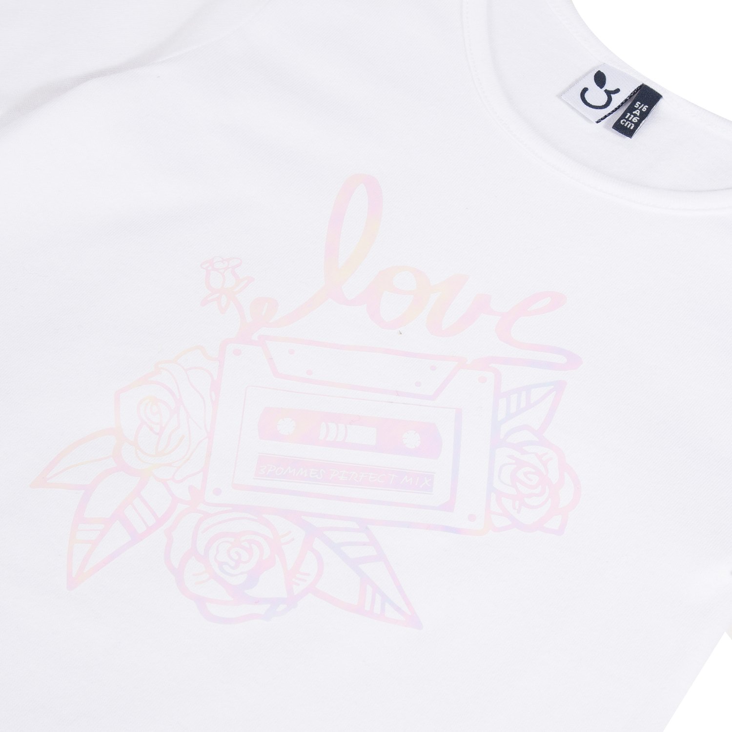 • Detalhes: Camisola branca de algodão com estampado holográfica no peito.