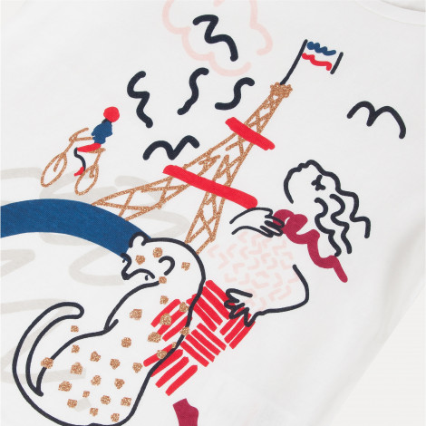 • Detalhes: Camisola em branco marfim apresenta uma estampa frontal, artística em Paris. Etiqueta Catimini na parte de trás.