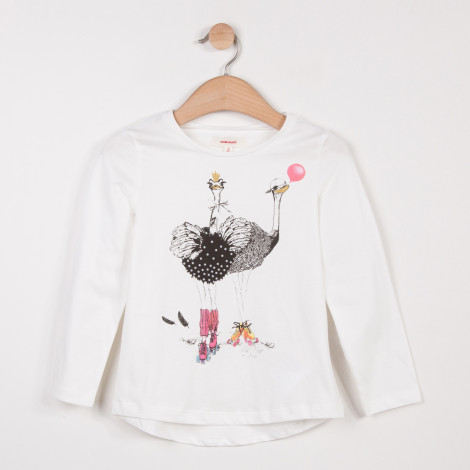 • Detalhes: Camisola de algodão branco com um motivo de avestruz brincalhão e colorido impresso na frente. Etiqueta Catimini.