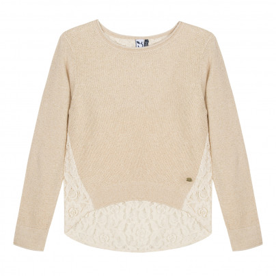 • Detalhes: Tecido com lurex dourado. Renda nas laterais e nas costas. Camisola curta na frente e longa e arredondada nas costas. Logótipo 3POMMES, costurado na parte inferior da camisola.