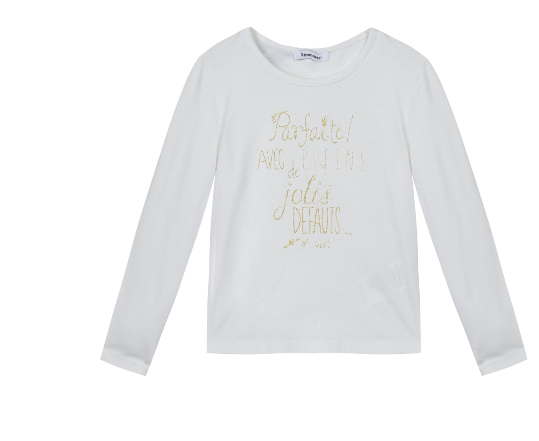 Camisola branca de manga comprida com texto dourado para criança