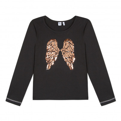 • Detalhes: Estampa de duas grandes asas de anjo em lantejoulas mágicas no peito. Elas mudam de cor para passar de prata para cobre!