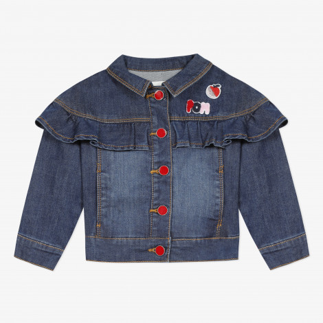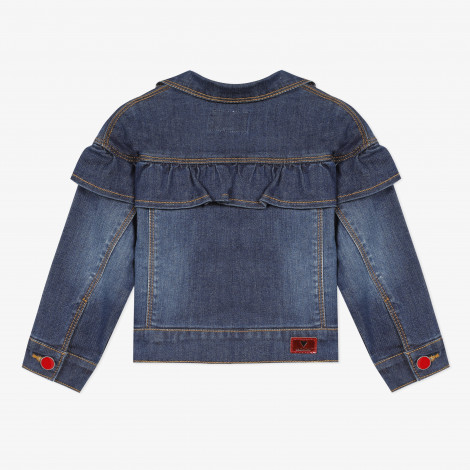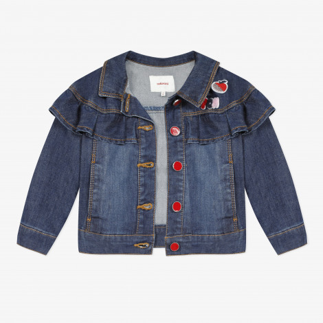 • Detalhes: Casaca de ganga com folhos no peito e crachás coloridos. Botões vermelhos. Lavagem escura. Crachá vermelho Catimini na parte de trás da jaqueta. Lavar à máquina a 30 ° C.