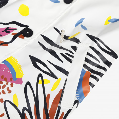 • Detalhes: Capa de chuva impermeável com capuz de borracha. Estampa colorida exótica. Lave a 30 ° C em ciclo delicado. Assinatura Catimini.