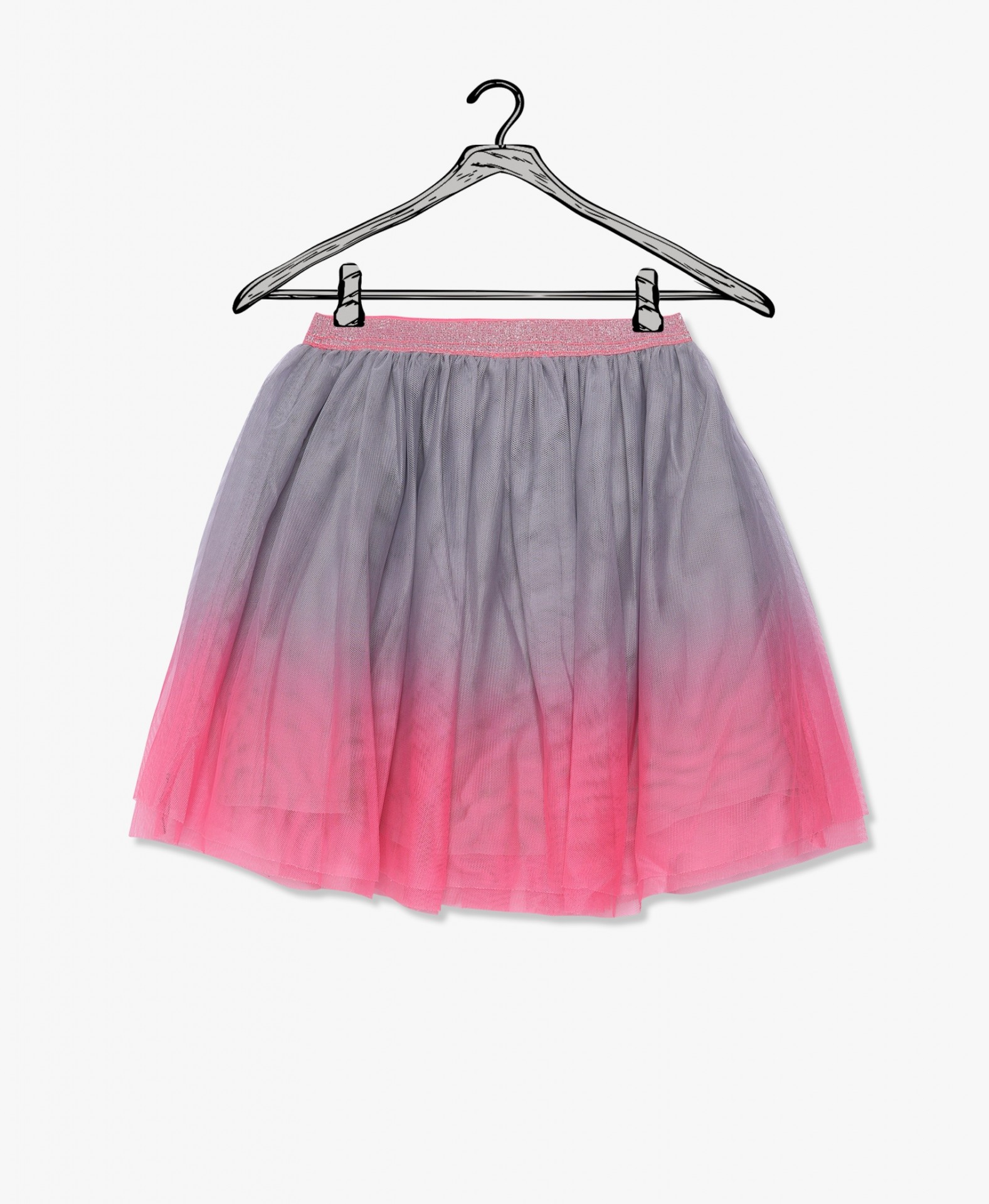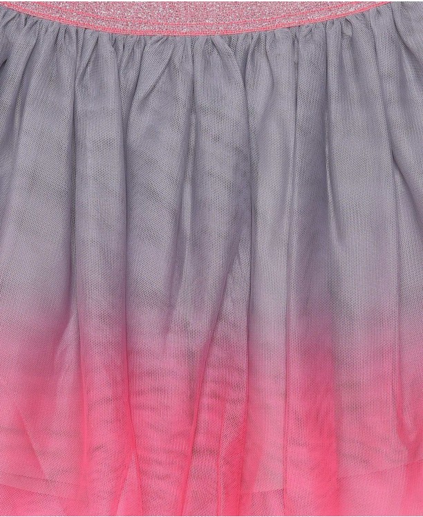 Saia infantil cinza e rosa degradê com cintura elástica glitter