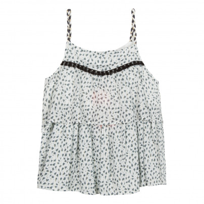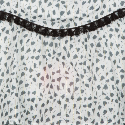 • Detalhes: Top composto por dois folhos. Padrão de folhas. Listras douradas. Fio preto no peito.