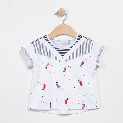 T-shirt branca riscas marinheiro Catimini
