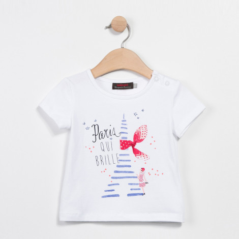 T-shirt branca de bebê com estampado da Torre Eiffel e texto Paris QUI BRILLE