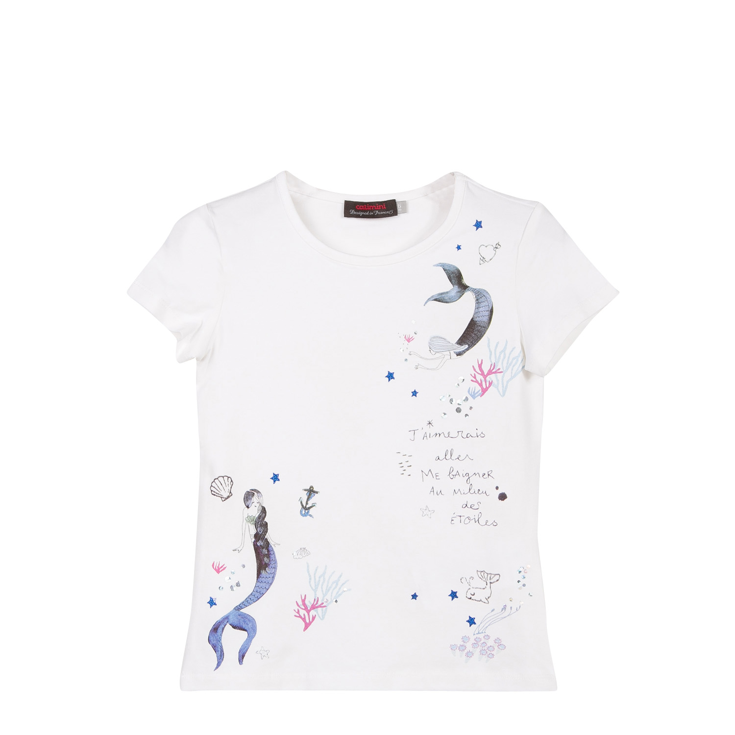 T-shirt branca estampa sereia Catimini