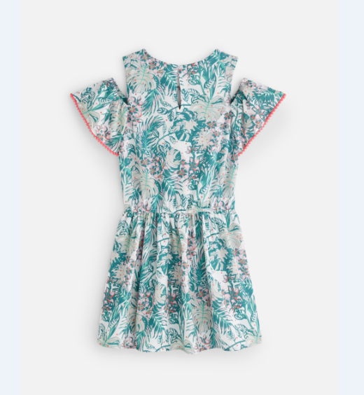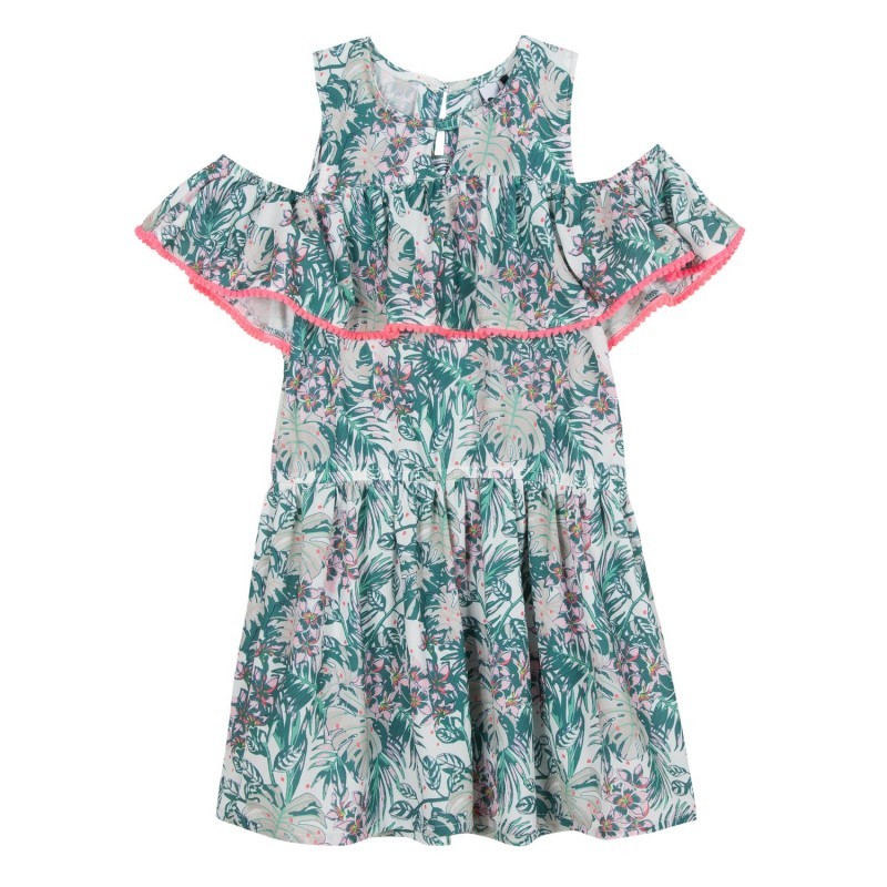 • Detalhes: Vestido floreado em tons verdes. Cintura elástica.