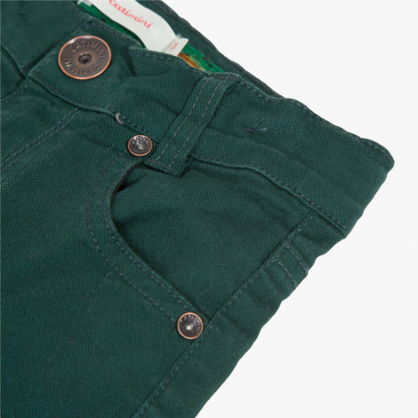 • Detalhes: Calça verde garrafa, elásticas. Cós com presilhas, prende com um gancho sob um botão decorativo de metal. Ajustável usando reguladores interiores. Tom sobre tom na costura superior. Distintivo Catimini preto na parte de trás.