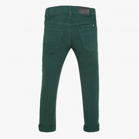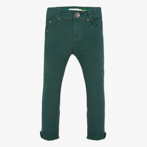 Calças compridas verdes para criança com botão metálico e bainhas dobradas