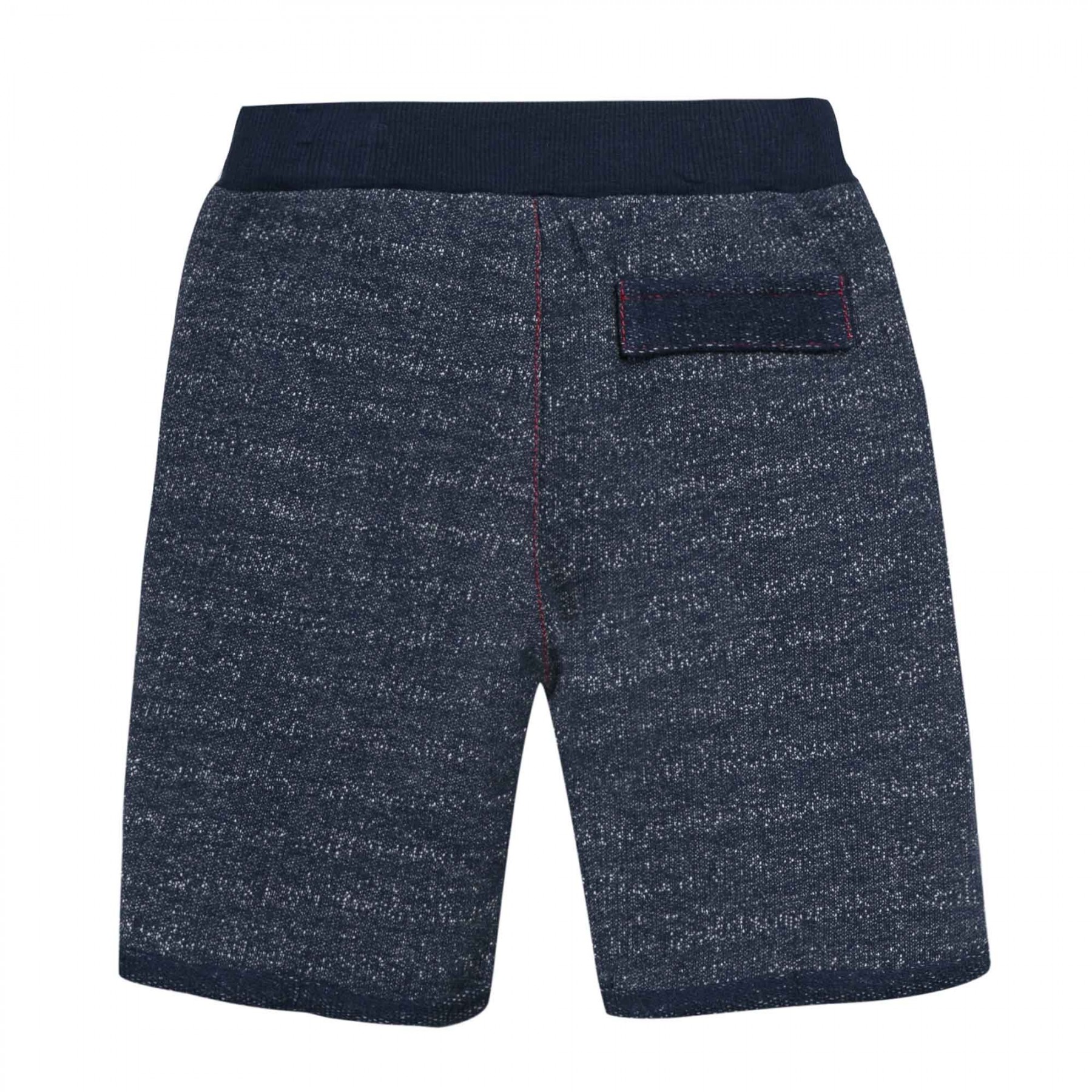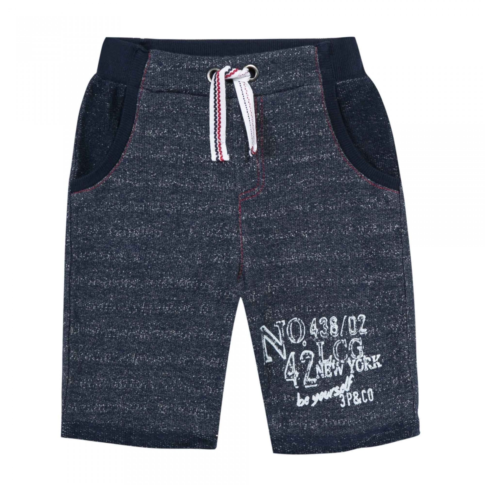 Calções infantis azul escuro com estampado branco e cordão na cintura