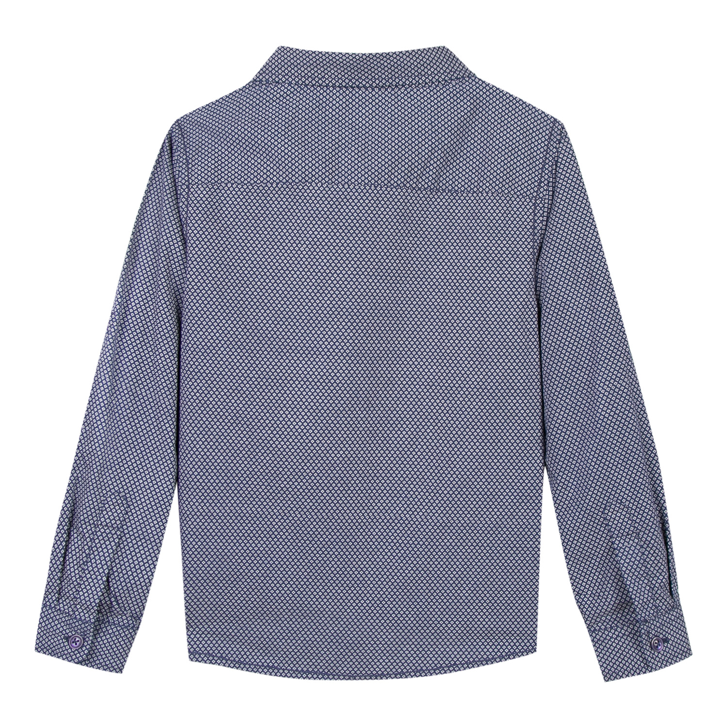 Camisa de manga comprida azul escuro com padrão geométrico branco para criança