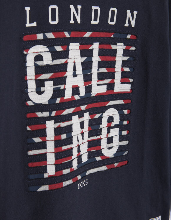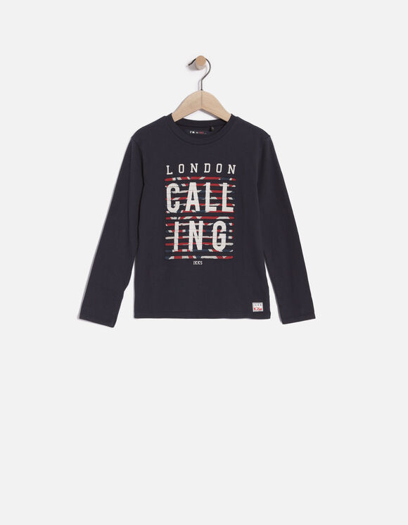 Camisola preta de manga comprida com estampa e texto 'LONDON CALLING'