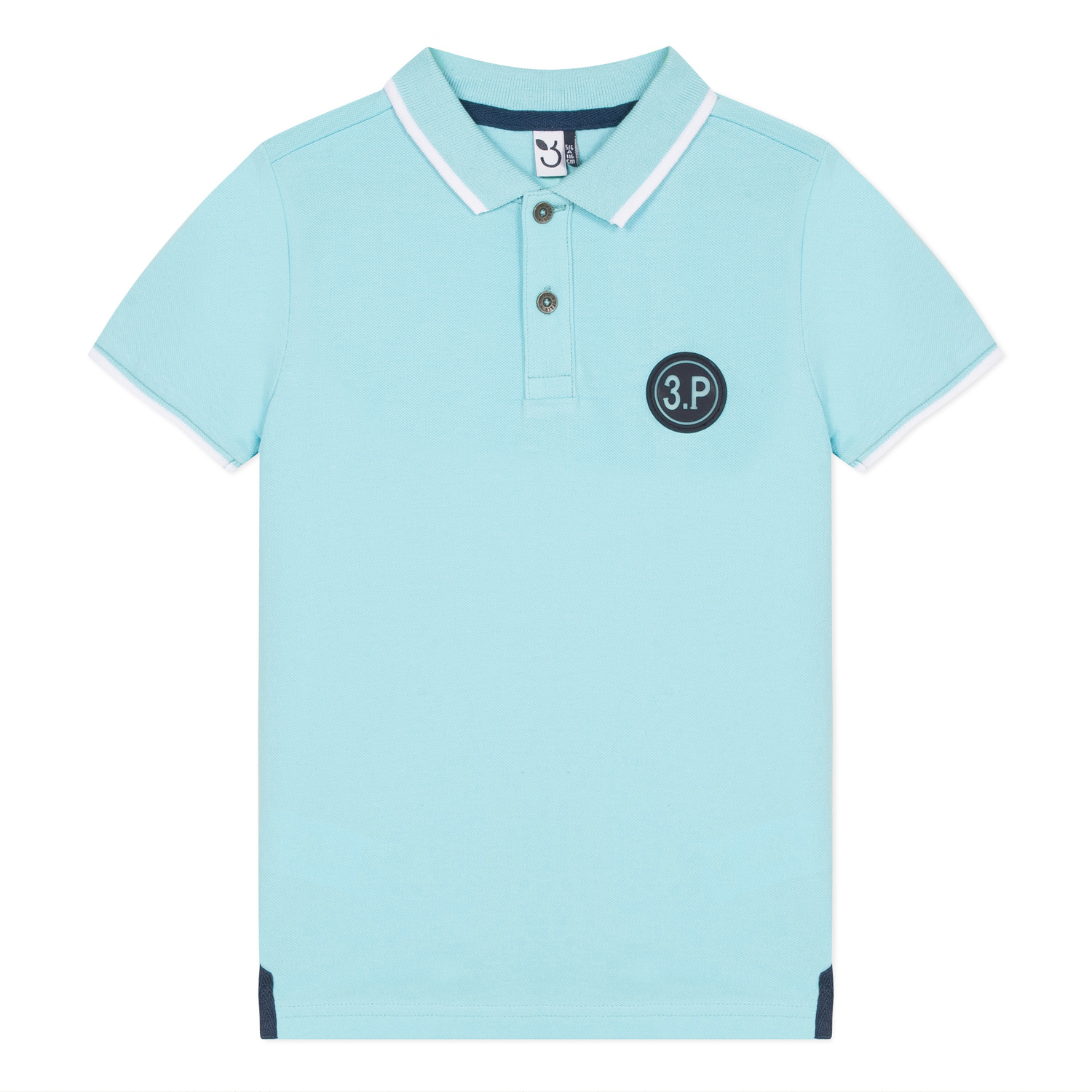 • Detalhes: Polo de algodão azul turquesa com detalhes em azul marinho.