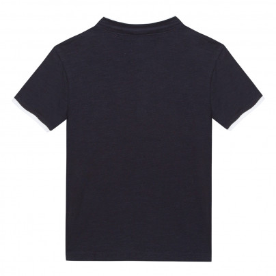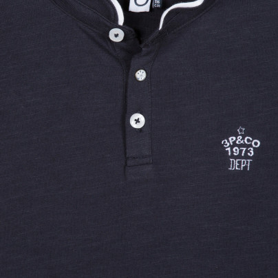 T-shirt azul escuro para criança com gola branca e botões
