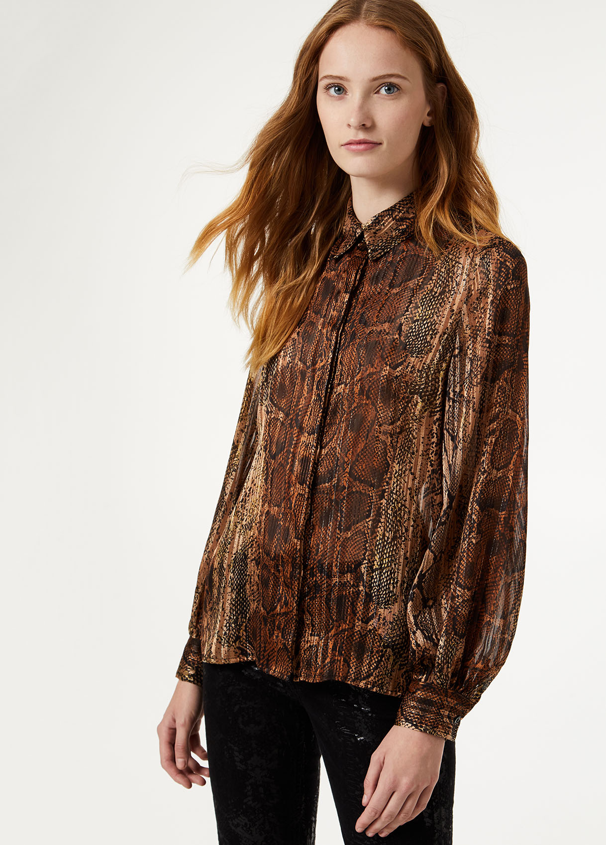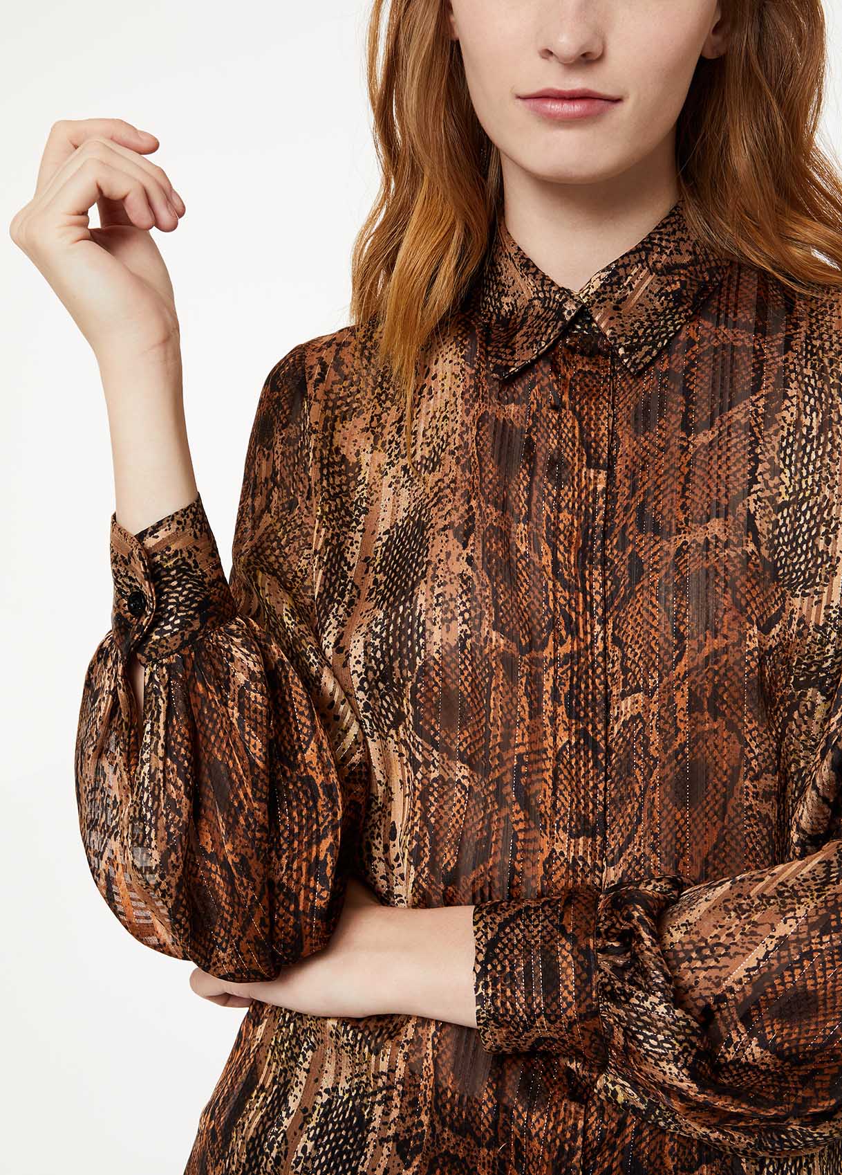 • Detalhes: Camisa impressa com Lurex® e mangas bufantes.