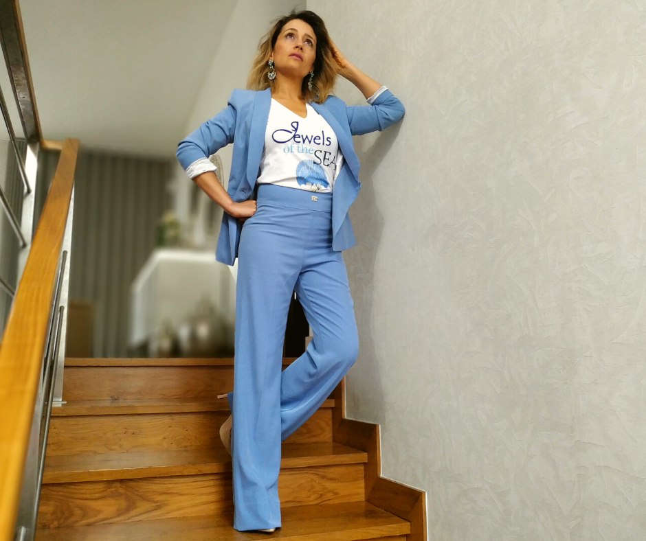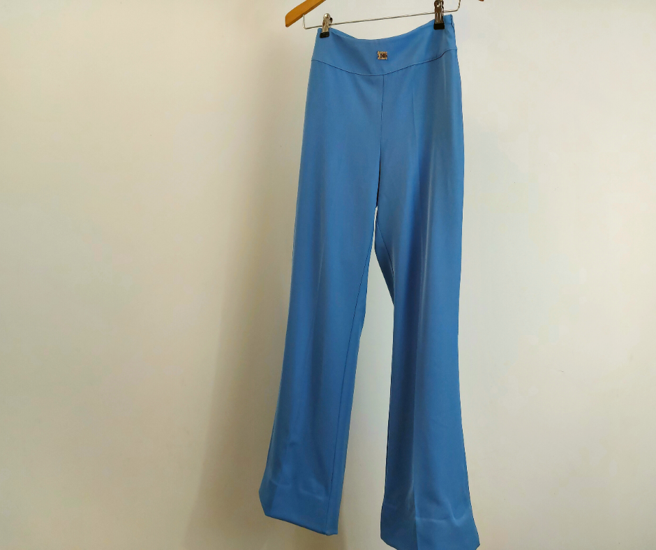 • Detalhes: Calça boca-de-sino. Cintura súbida. Logótipo RB em dourado na cintura.