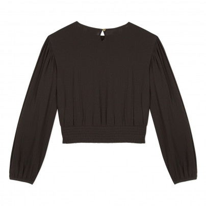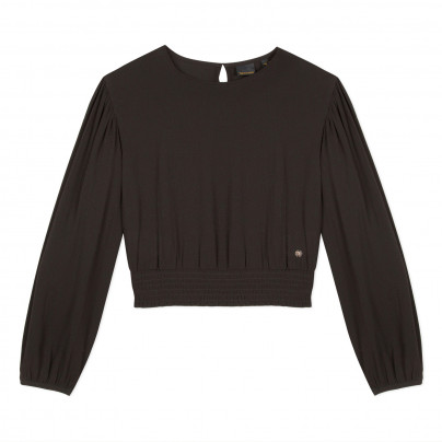 Blusa preta de manga comprida com cintura franzida