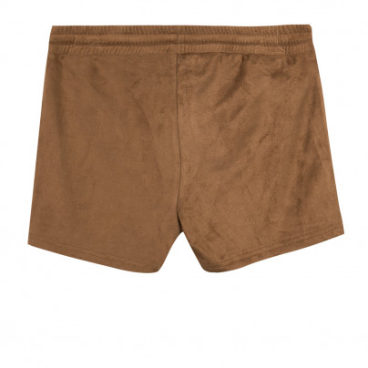 Calções marrons de tecido aveludado com cordão de aperto na cintura