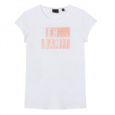 • Detalhes: T-shirt branca de algodão é decorada com a inscrição "eh ... bam !!" impressas em cobre.