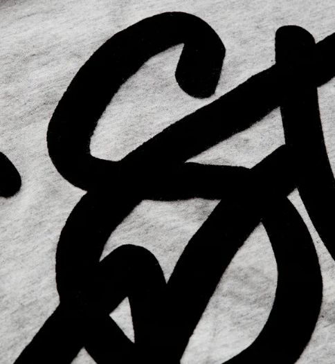 • Detalhes: T-shirt cinza com um design gráfico em veludo, preto.