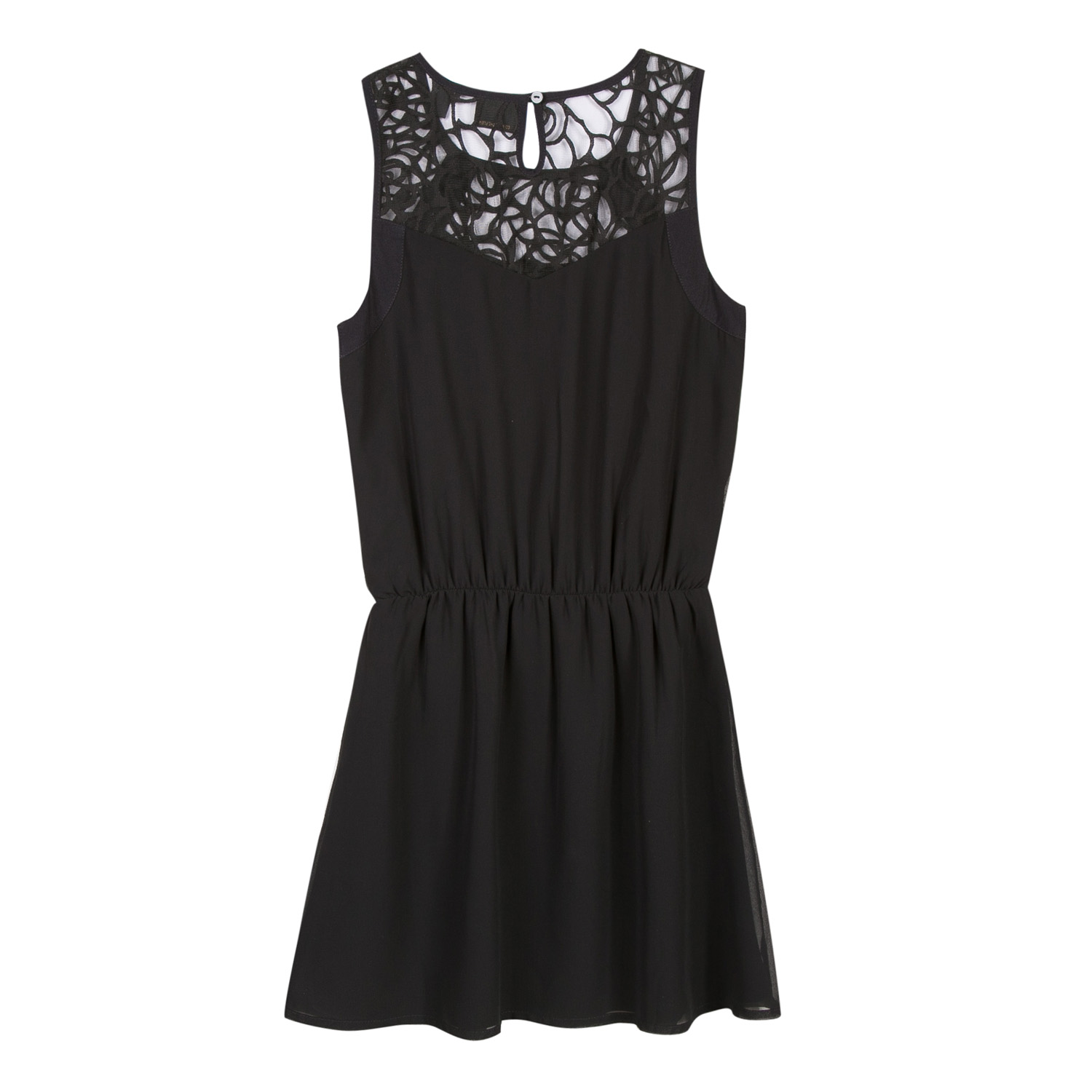 • Detalhes: Vestido devidamente forrado. Transparência na zona dos ombros. Elástico na cintura.
