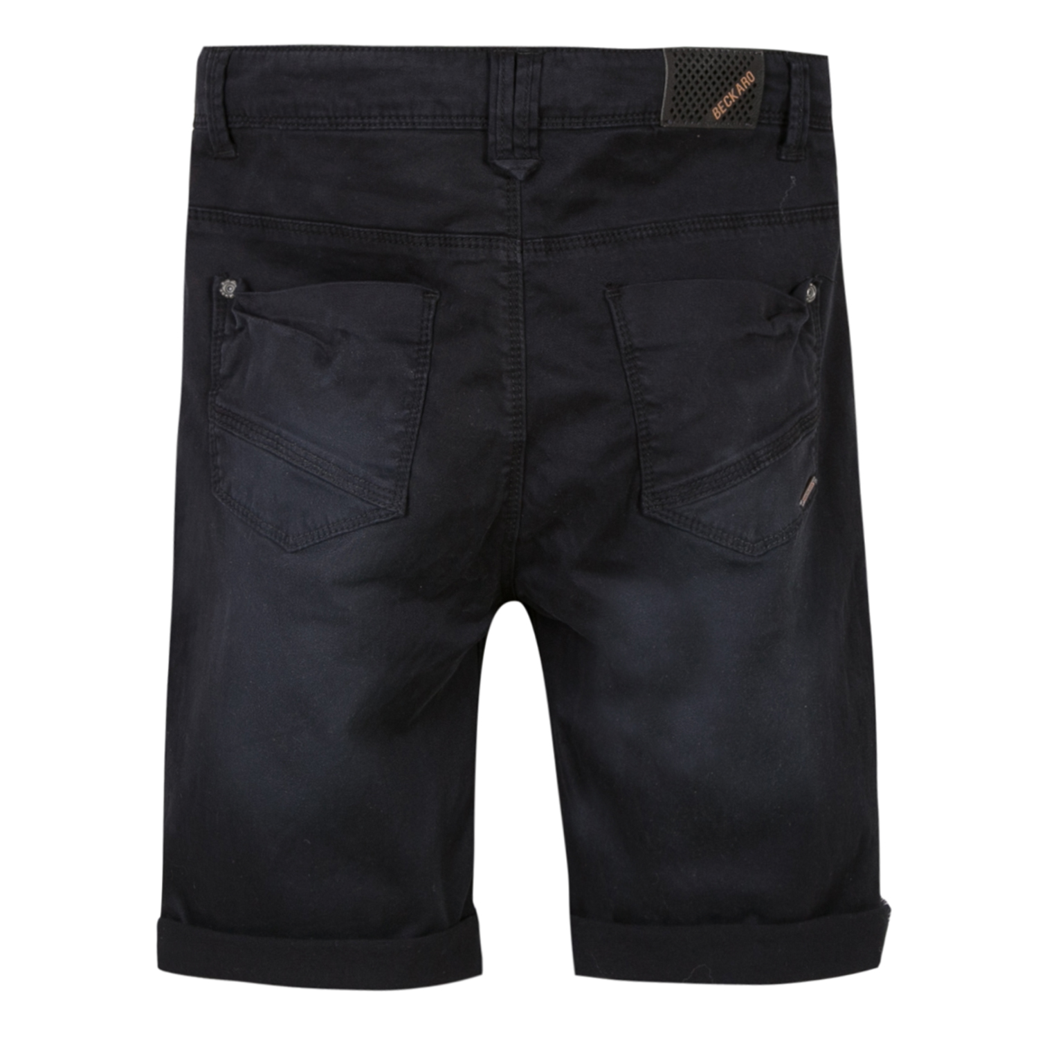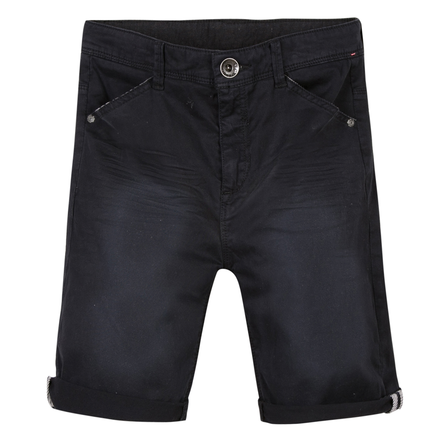 Calções pretos de tecido com bolsos frontais e dobra na bainha