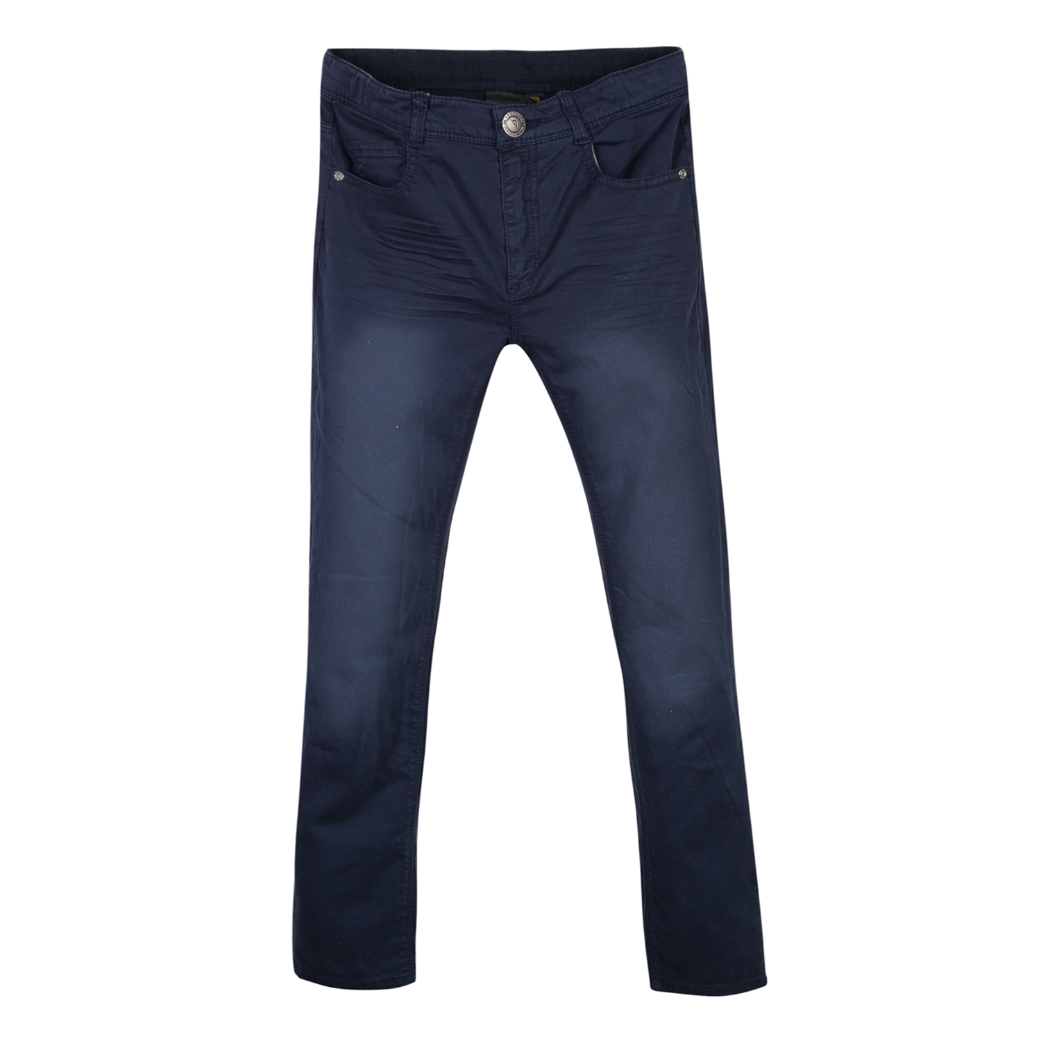 Calças compridas azul escuro com bolsos e botão
