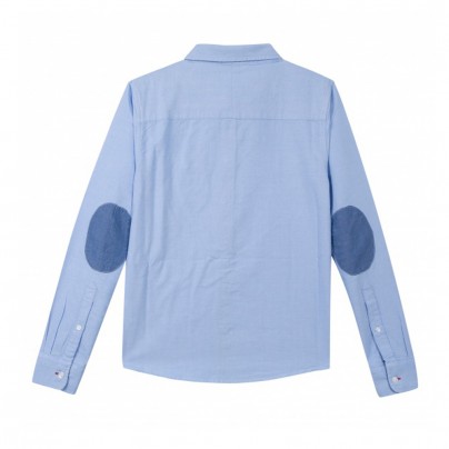Camisa azul clara de manga comprida com gola e bolso no peito.