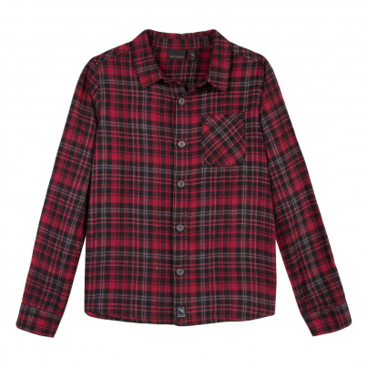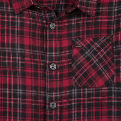 Camisa de manga comprida xadrez vermelho e preto com bolso no peito