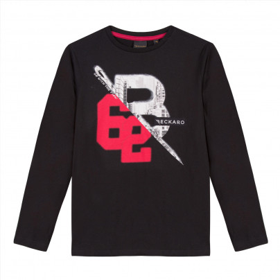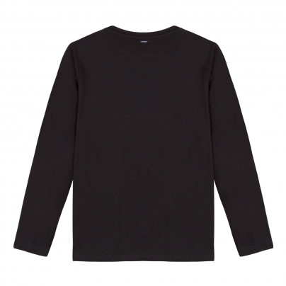 • Pormenores: Camisola com gráfico vermelho e branco, fundo preto. Mangas compridas. Gola redonda.