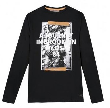• Pormenores: Gola redonda. Desenho na parte da frente da camisola.