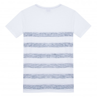 • Detalhes: T-shirt de riscas azuis. Um bolso de peito azul-marinho contrasta com essas riscas marinhas. BECKARO é costurado no bolso, bem como um rótulo de marca na parte inferior da camiseta.